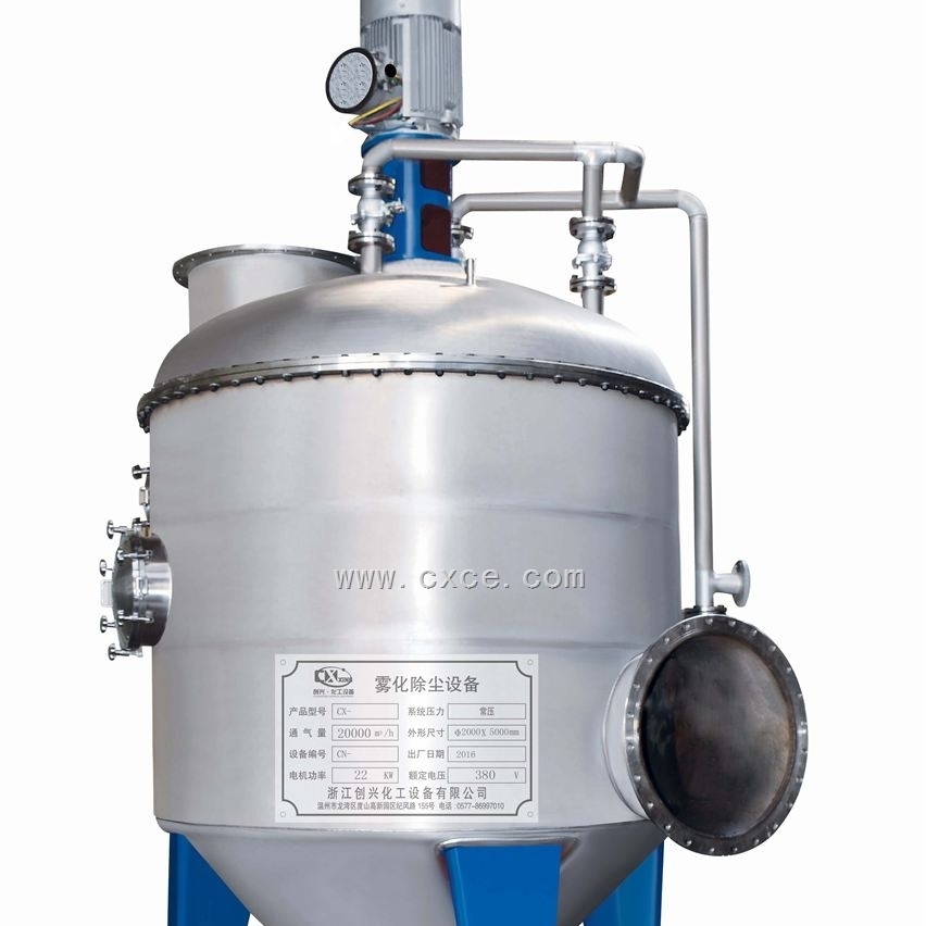 高效旋转雾化除尘净化装置是利用超重力原理创建起来的一种新型的强化传递过程的技术 , 它通过高速旋转产生强大的离心力场代替重力场 , 从而实现了传质过程的强化 ,也很大地缩小了设备尺寸与质量。超重力雾化除尘一般使用一个转子 , 通过电动机带动转子高速旋转产生巨大离心力 ,也即超重力。如今 ,超重力技术已引起各个领域科学工作者的广泛关注 ,并在工业中得到应用。空气粉尘污染是环境污染的主要形式之一,尤其是工矿企业生产过程中产生的粉尘、废气直接伤害工人的健康,污染环境。而目前沿用的各种除尘技术和装备普遍除尘效果不甚理想,投资费用又高。 是一种新的尝试。 虽然超重力技术的实质是通过离心力场的作用而达到模拟超重力环境的目的, 但该技术与传统的利用离心力进行复相分离或密度差分离有着质的区别。其核心在于对传递过程和微观混合过程的很大强化 ,因而应用于需要对相间传递过程进行强化的多相过程,和需要相内或拟均相内微观混合强化的混合和反应过程。