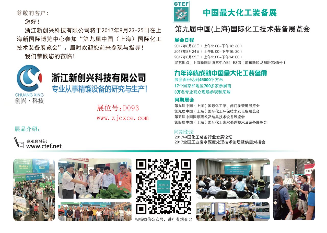 创兴科技邀您共赴CTEF2017上海化工装备展