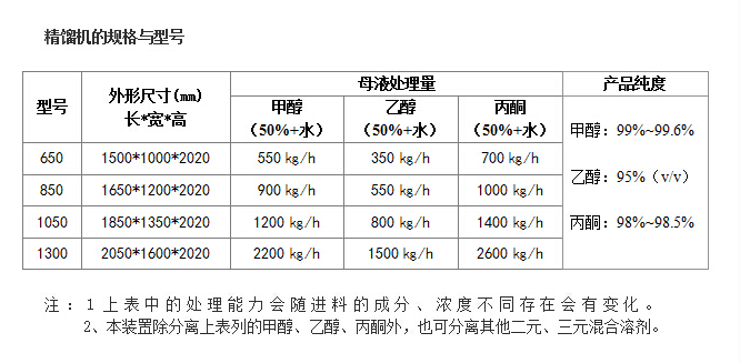 广泛应用于乙醇、甲醇、丙酮、乙酸乙酯、乙腈、*、二氯甲烷、DMF、DMSO、甲苯、异丙醇、叔丁醇等有机溶剂的回收及产品分离提纯,在原料药、医药中间体、精细化工、生物柴油、环保、制酒等行业已产业化应用无数套。